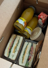 아침 조식으로는 샌드위치와 오렌지 음료가 나왔어요. 음료가 달지 않아서 좋았고 간단하게 허기를 달랠 수 있어 좋았습니다.